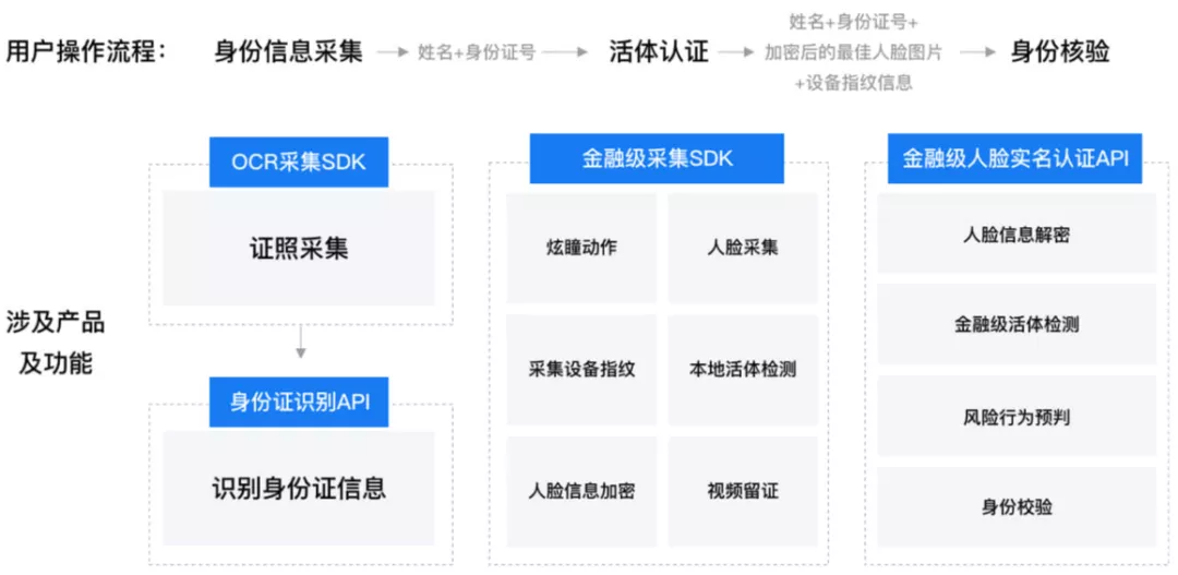 基于炫瞳活体技术,百度大脑全新发布「金融级人脸实名认证方案」,该方案通过三大拳头能力为高安全性、高通过率、高识别率的身份核验流程保驾护航: