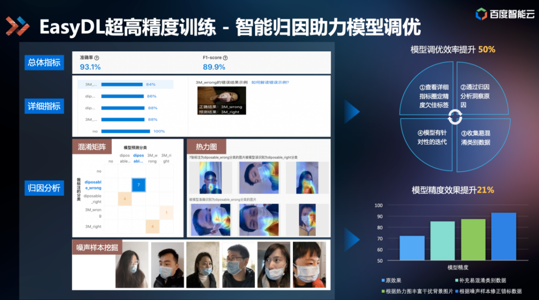 噪声样本挖掘:根据混淆矩阵和热力图,直接挖掘影响模型效果的噪声样本,帮助开发者有针对性的进行模型迭代。