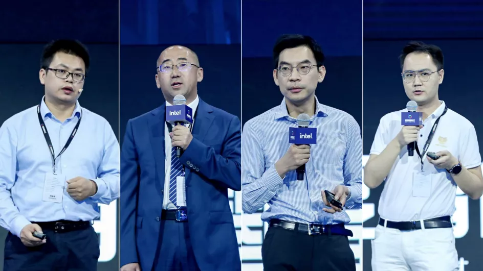 6月3日,2021百度智能计算峰会,从左到右分别为:吉利控股集团信息工程中心 CTO 郑金伟;鄂尔多斯市东胜区房屋运营管理有限公司董事长王新,升哲科技创始人兼 CEO 赵武阳,知乎高级总监、算法中台负责人张瑞